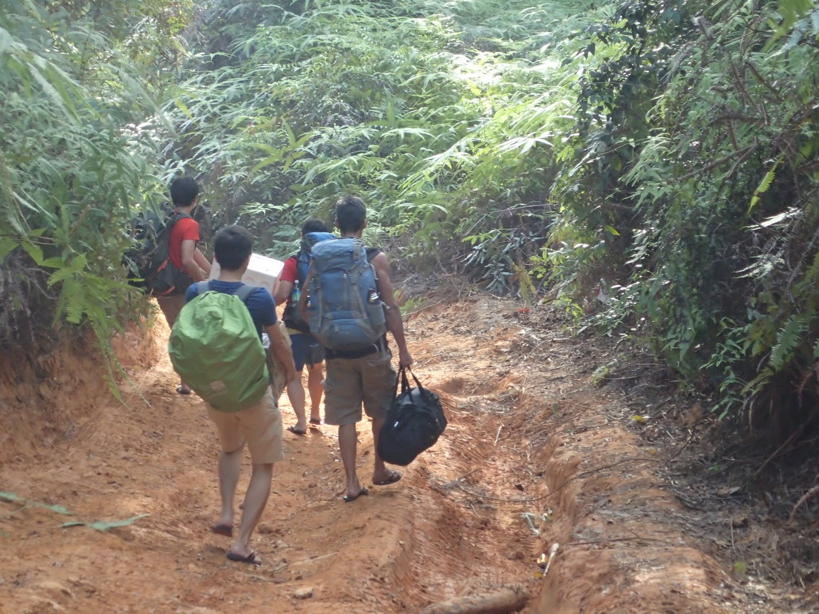 庆幸的没遇上森林局人员,所以安然无恙的进入,两车进入后把车隐藏到美美就开始探索,开始路段算是常规山路,到了一半路途后,队长打开他的宝貝(地图)就开始往着路不像路的丛林而下,一路上已有先前一队人马来探索过了,都留下痕迹,在多次痕迹中断后,队长还是靠丰富的经营带领5人到达必要的河口处.